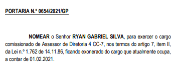 Ryan, que é casado com a irmã da parlamentar, foi nomeado para exercer a função de Assessor de Diretoria 4 CC7 e Rosemary, ex-companheira do pai da Mayara, Adail Pinheiro, foi designada para o cargo de Assessor de Diretoria 8 CC11. As nomeações constam no Diário Oficial do Legislativo da Aleam.
