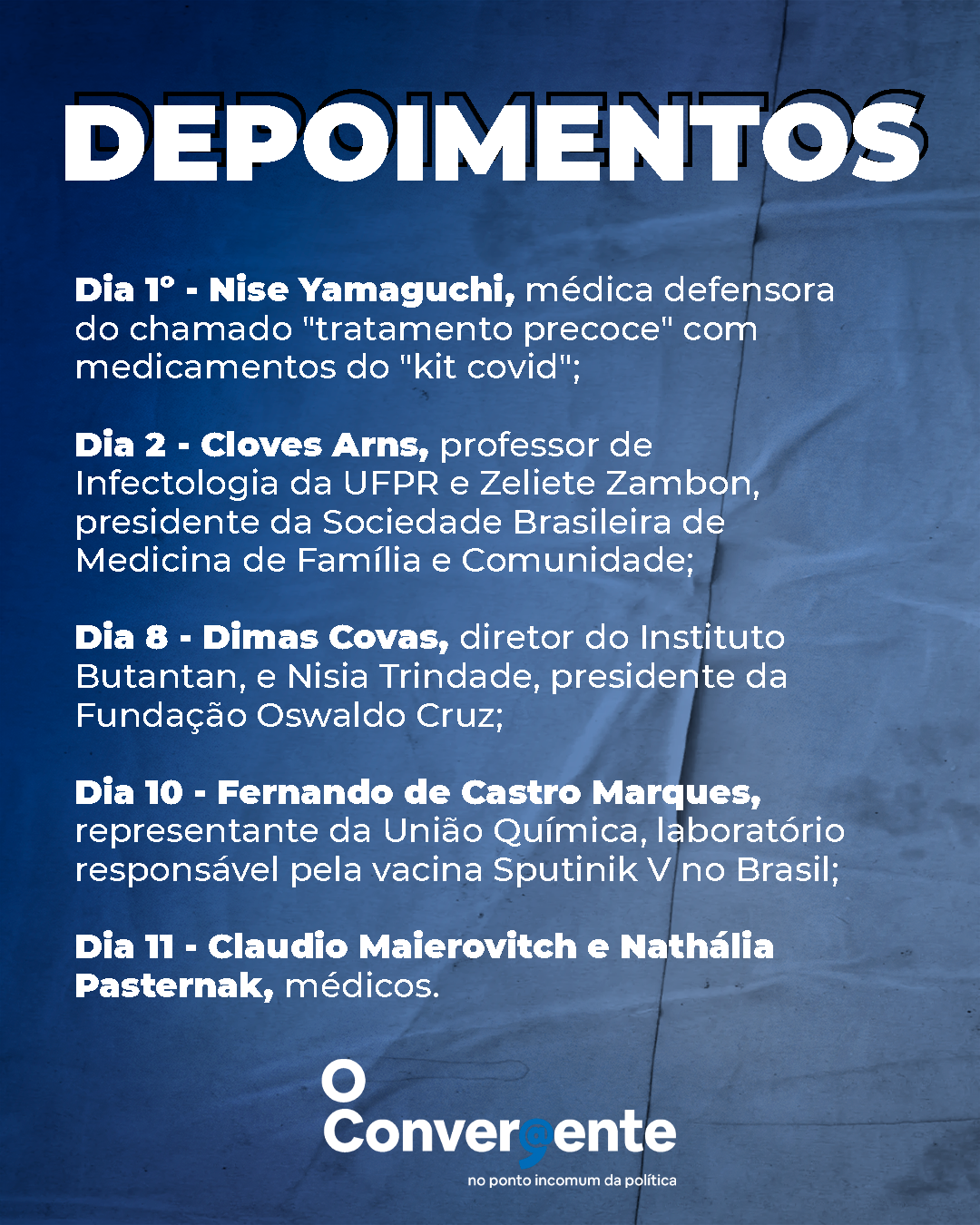 Oitivas de junho – Em junho, no dia 1º, o colegiado recebe a médica Nise Yamaguchi, defensora do chamado “tratamento precoce” com medicamentos do “kit covid”, coquetel de drogas sem comprovação científica para a doença.