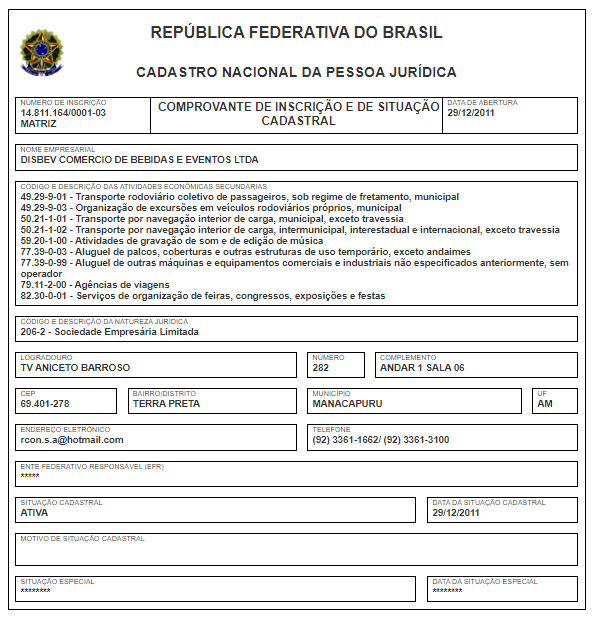 De acordo com a representação do MPC-AM ao TCE, inicialmente, o que chamou a atenção foi o fato de constar no cadastro da empresa junto à Receita Federal a atividade principal como sendo de fornecimento de serviços administrativos e o estabelecimento ter sido contratado para construção do estádio. No cadastro do órgão federal, consta que a empresa realiza diversas atividades secundárias.