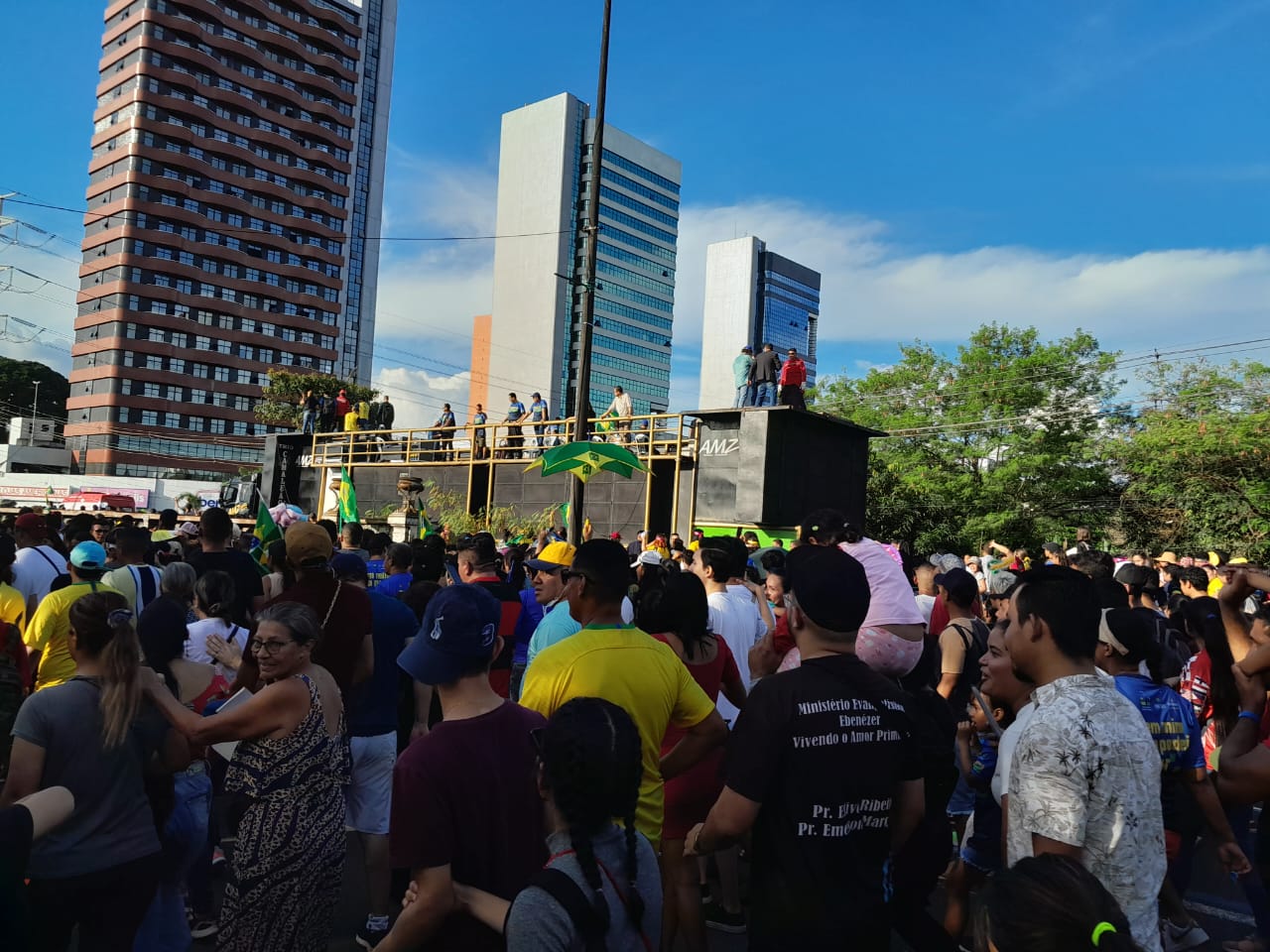 O presidente Jair Bolsonaro (PL), que chegou a Manaus na manhã deste sábado, acompanha neste momento o evento ‘Marcha para Jesus’. O presidente que mais cedo visitou o Comando Militar da Amazônia (CMA) e reuniu com líderes religiosos, em uma reunião fechada no Tetro Amazonas, subiu em um dos trios elétricos do evento e depois desceu para acompanhar parte do trajeto a pé.