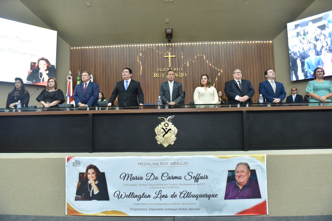 A Assembleia Legislativa do Amazonas (Aleam) concedeu, nessa quinta-feira, 1°/12, aos mantenedores do Grupo Fametro, Wellington Lins de Albuquerque e Maria do Carmo Seffair Lins de Albuquerque, a Medalha Ruy Araújo, considerada a maior honraria do Poder Legislativo estadual.