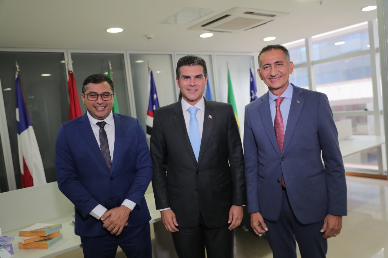 O governador do Amazonas, Wilson Lima (União Brasil) participou na manhã desta quarta-feira, 4/1, da posse do governador do Pará, Helder Barbalho, como presidente do Consórcio Interestadual de Desenvolvimento Sustentável da Amazônia Legal (CAL), em Brasília. Na cerimônia, Wilson Lima destacou sua preocupação com a proteção dos povos da floresta.