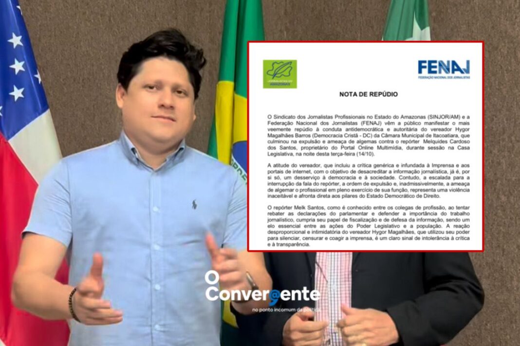 O texto também defende o papel da imprensa como fiscalizadora do poder público e essencial para a democracia. “A reação desproporcional e intimidatória do vereador Hygor Magalhães, que utilizou seu poder para silenciar, censurar e coagir a imprensa, é um claro sinal de intolerância à crítica e à transparência”, afirmam Sinjor-AM e Fenaj.