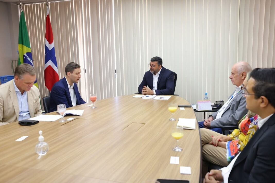 O governador do Amazonas, Wilson Lima, recebeu neste sábado o ministro do Clima e Meio Ambiente da Noruega, Andreas Bjelland Eriksen, e representantes da diretoria do Banco Mundial, em Manaus. Durante o encontro, foram apresentadas as ações do governo estadual voltadas à proteção ambiental e ao desenvolvimento sustentável, com foco na melhoria da qualidade de vida das populações que vivem na floresta.