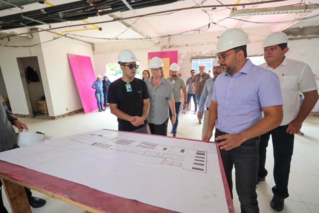 O governador Wilson Lima vistoriou, nesta segunda-feira (17), as obras da nova Policlínica e do Hospital Dia do Complexo Hospitalar Sul (CHS), em Manaus, que já alcançaram 70% de execução e vão ampliar a assistência aos pacientes do HPS 28 de Agosto, com foco na pós-alta e em procedimentos de curta permanência.