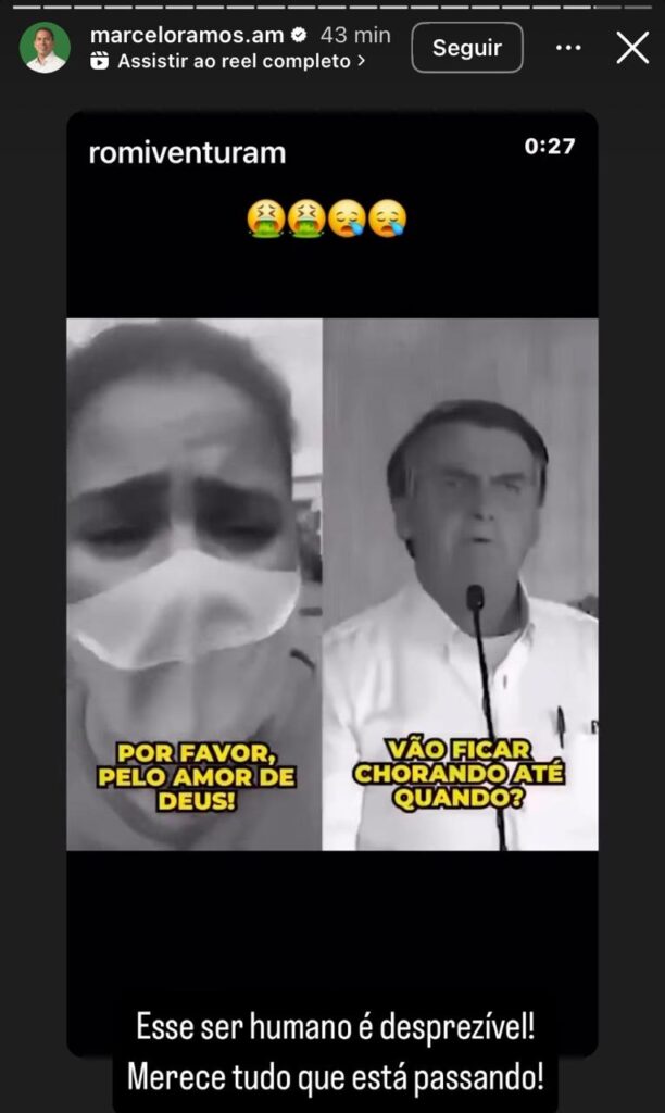 Em comentário através dos stories do Instagram, o ex-deputado federal e pré-candidato ao Senado, Marcelo Ramos (PT), fez uma série de postagens sobre a prisão do ex-presidente.