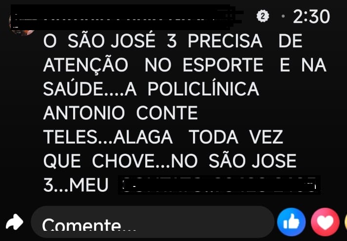 Nas redes sociais da Prefeitura de Manaus, onde foi transmitida a inauguração da UBS, alguns seguidores fizeram cobranças à gestão municipal. Um deles disse que o bairro de São José 3, na zona Leste de Manaus, precisa de atenção no esporte, na saúde e afirmou que toda vez que chove a Policlínica Dr. Antonio Conte Telles, administrada pela Prefeitura de Manaus, alaga.