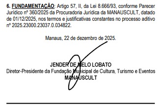 De acordo com o documento, a justificativa apresentada pela Manauscult é a necessidade de “atender às demandas constantes” da fundação, conforme previsto no Termo de Referência do processo administrativo nº 2025.23000.23037.0.034822.
