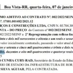 Ainda segundo a publicação no Diário Oficial de Roraima, o reajuste se deu pelo “a “2ª Reprogramação com reflexo financeiro positivo”, assinados pelos signatários: Mikael Wallas Cunha Cury-Rad, secretário de Estado da Educação e Desporto, Edilson Damião Lima, secretário de Estado da Infraestrutura de Roraima, pelos contratantes e Jaime da Silva Aguiar, pela Contratada.