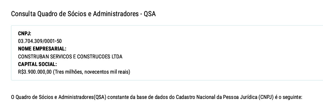 A Construban está inscrita sob o CNPJ n.º 03.704.309/0001-50, possui em seu quadro de sócios o empresário Antonio José da Silva Aguiar, um capital social de R$ 3,9 milhões. Sua matriz está localizada em Manaus, segundo o cadastro na Receita Federal, no bairro Parque Dez de Novembro, na zona Centro-Sul da capital amazonense. Além da atividade principal, ela possui ainda, mais 34 atividades secundárias.