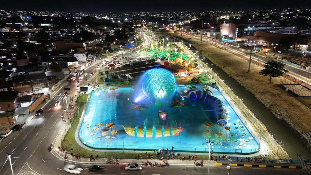 O complexo também reúne quadras poliesportivas, academias ao ar livre, pista de skate, áreas destinadas a animais de estimação e playground inclusivo. A estrutura ainda conta com quiosques, decks de convivência e um espaço multiuso voltado a atividades físicas coletivas e apresentações culturais.