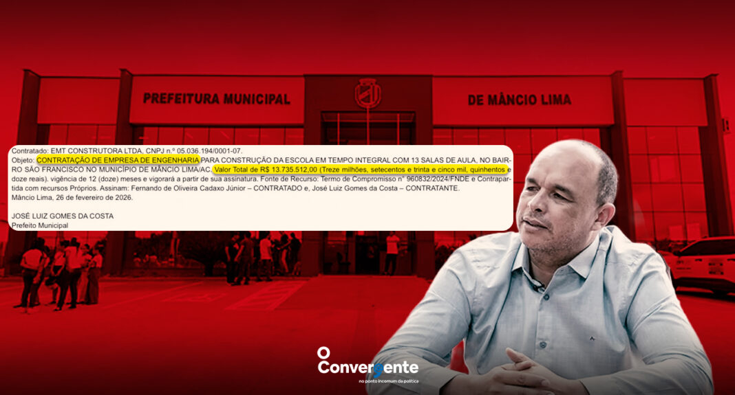 A Prefeitura de Mâncio Lima, município do interior do Acre, firmou um contrato milionário para a construção de uma escola de tempo integral. O que tem chamado atenção no gasto público é o alto valor para uma cidade com menos de 20 mil habitantes, conforme dados mais recentes do IGBE. A informação consta no Diário Oficial do Acre.