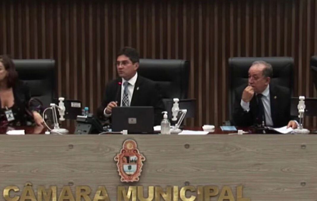 A sessão era presidida pelo vereador Jander Lobato (PSD). O alerta foi disparado enquanto o vereador Luis Mitoso (MDB) manifestava apoio à moção apresentada por Rodrigo Sá (Progressistas), que criticava a fala do deputado.