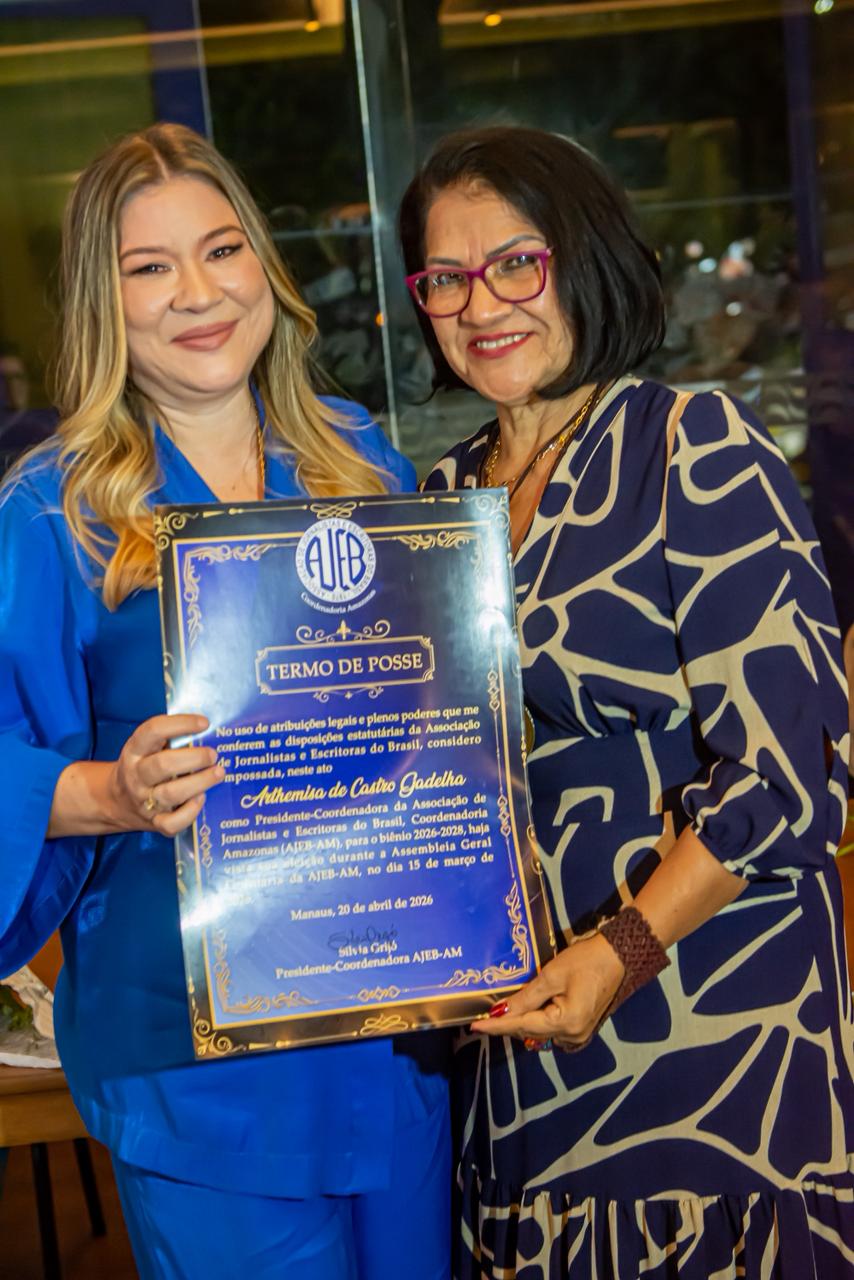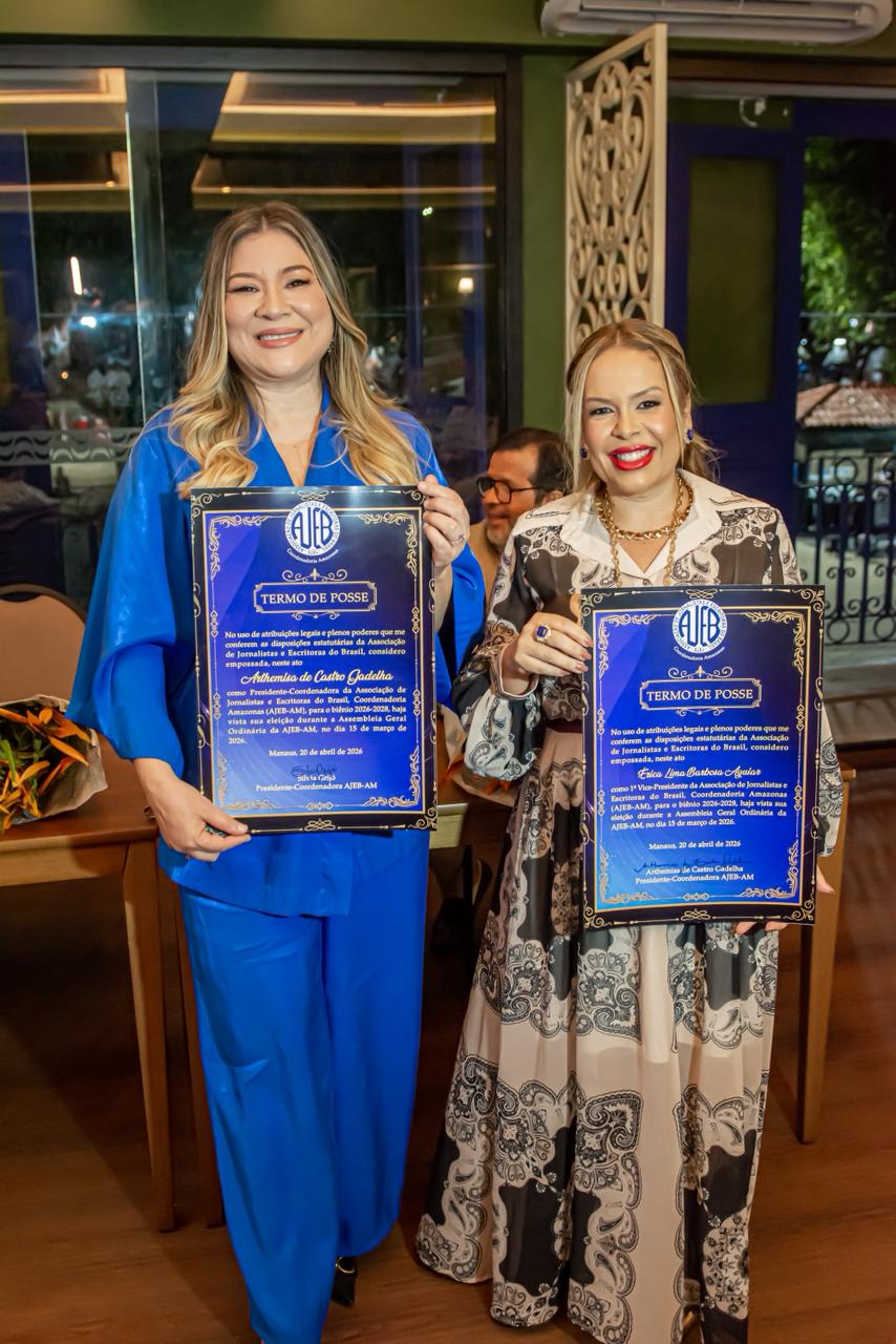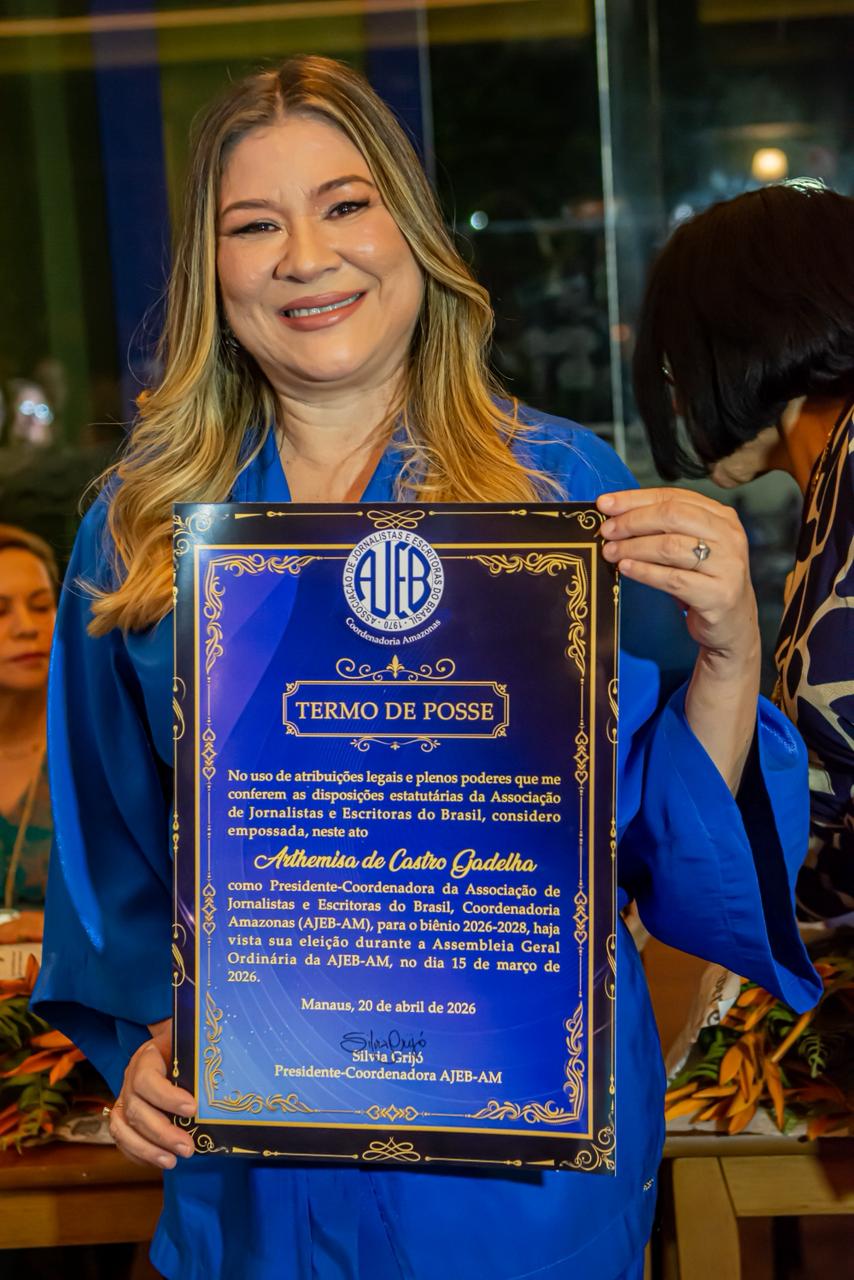 A Associação de Jornalistas e Escritoras do Brasil no Amazonas (AJEB-AM) empossou, nesta segunda-feira (20), a nova diretoria que conduzirá a entidade no biênio 2026/2028. A presidência passa a ser ocupada por Arthemisa Gadelha, com Erica Lima Barbosa Aguiar na função de 1ª vice-presidente.