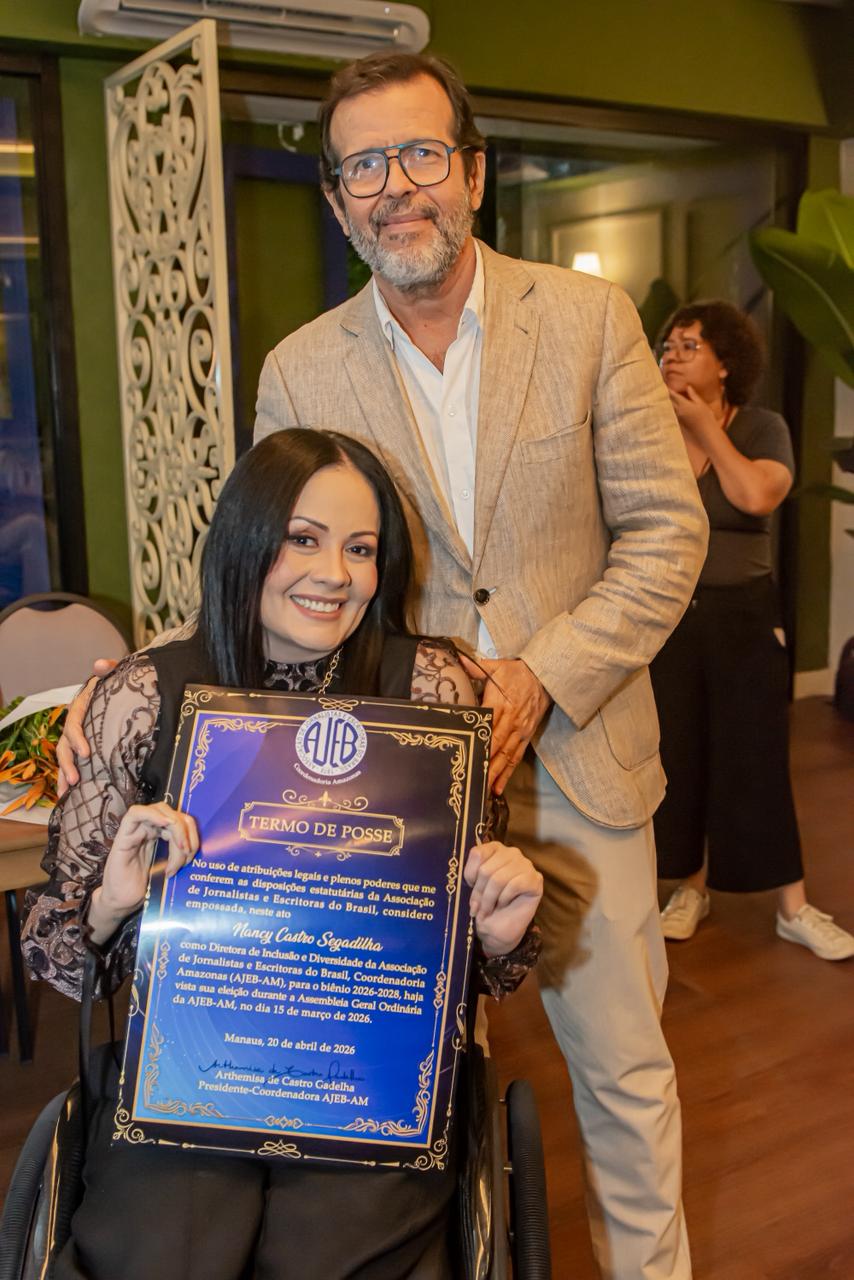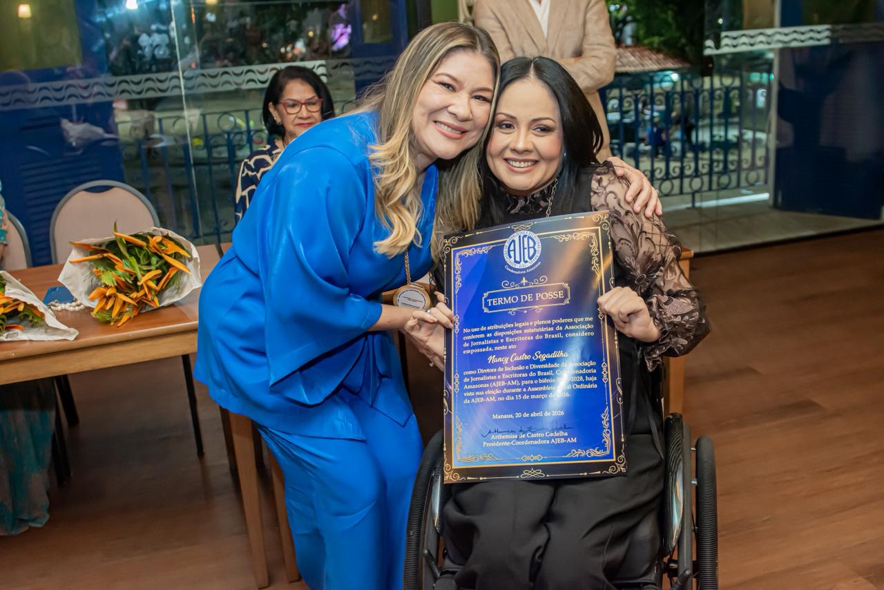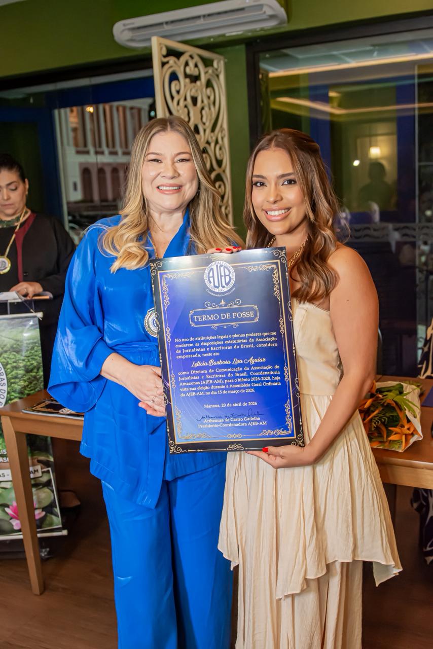 A Associação de Jornalistas e Escritoras do Brasil no Amazonas (AJEB-AM) empossou, nesta segunda-feira (20), a nova diretoria que conduzirá a entidade no biênio 2026/2028. A presidência passa a ser ocupada por Arthemisa Gadelha, com Erica Lima Barbosa Aguiar na função de 1ª vice-presidente.