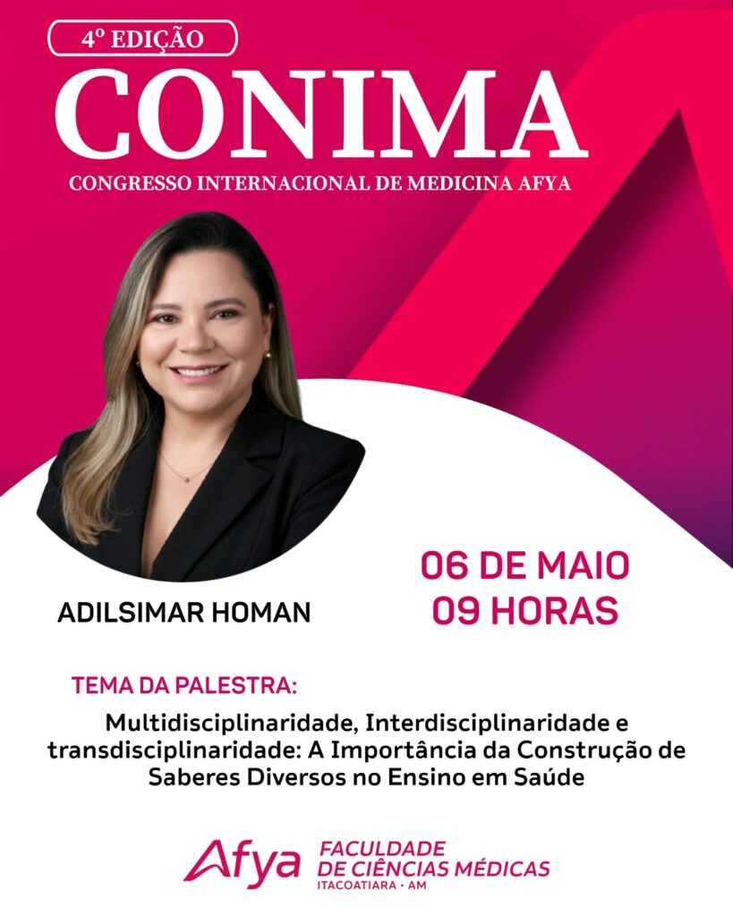 A 4ª edição do Congresso Internacional de Medicina Afya (CONIMA 2026) contará com a participação de destaque da palestrante e professora Adilsimar Homan, que possui mais de 20 anos de atuação no Ensino Superior, e que ministrará sua conferência diretamente de Portugal, reforçando o caráter global do evento. A apresentação está marcada para o dia 6 de maio, às 9h, com transmissão online, e inscrição gratuita.