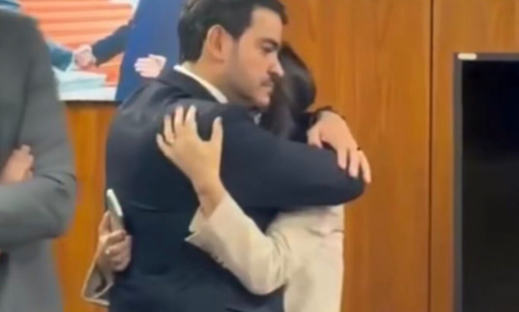 Jorge Messias foi visto abraçando sua esposa, Karina Messias, logo após descobrir que sua indicação ao STF (Supremo Tribunal Federal) foi barrada no plenário do Senado. O momento aconteceu na sala da liderança do PT.